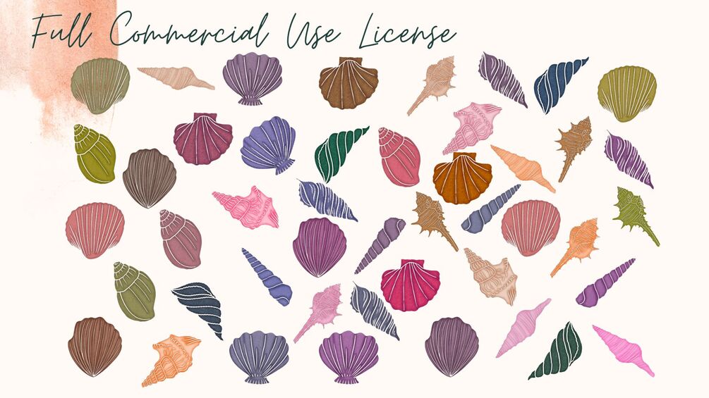 The Shell Kit 48 hand drawn 300dpi Hi-Res Clipart Images